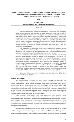 Ranifah (2022) Upaya meningkatkan aktivitas dan hasil belajar matematika melalui model pembelajaran kooperatif tipe STAD pada peserta didik di kelas VIII.6 SMPN 14 Padang. Jurnal Pendidikan, 2 (1): 7. pp. 35-39. ISSN 2962-4568