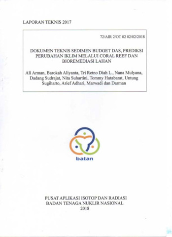 Arman, Ali and Aliyanta, Barokah and Larasati, Tri Retno Dyah and Mulyana, Nana and Sudrajat, Dadang and Suhartini, Nita and Hutabarat, Tommy and Sugiharto, Untung and Adhari, Arief and Marwadi, Marwadi and Darman, Darman (2018) Laporan Teknis 2017: Dokumen Teknis Sedimen Budget DAS, Prediksi Perubahan Iklim Melalui Coral Reef dan Bioremediasi Lahan. Technical Report. PAIR BATAN.