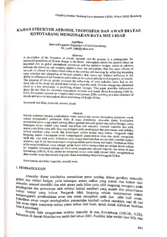 | Uncontrolled Keywords: | mie lidar, troposfer, aerosol, awan |