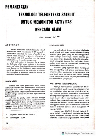 Bencana alam seperti gempa bumi, banjir, gunung meletus dan lain-lain dapat membahayakan kehidupan di permukaan bumi. Suatu Teknologi Teledeteksi dengan menggunakan satelit sebagai wahananya kini telah dikembangkan sehingga aktivitas bencana alam dapat dimonitor pada setiap saat.