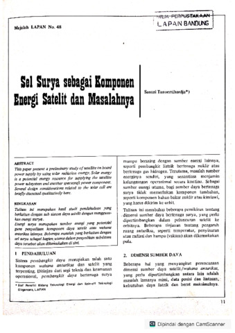 Sanusi, Tanoemihardja (1988) Sel surya sebagai komponen energi satelit dan masalahnya. Majalah LAPAN, 13 (48): 2. pp. 11-19. ISSN 0126-0480