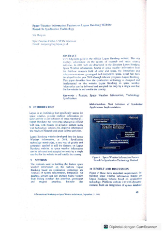 Siti, Maryam (2011) Space weather information feature on Lapan Bandung website based on syndication technology. In: Proceedings 2011 International Workshop on Space Weather in Indonesia, 21 Sept 2011, Bandung.