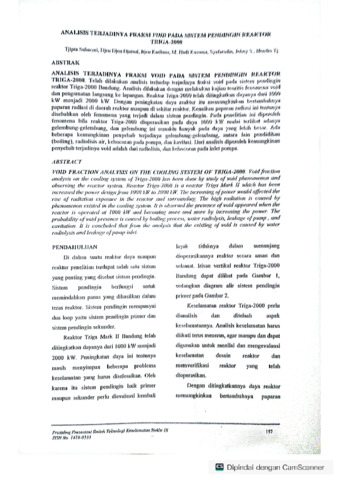 Tjipta Suhaemi and Djen Djen Djainal and Itjeu Karliana and M. Hadi Kusuma (2004) Analisis terjadinya fraksi void pada sistem pendingin reaktor Triga-2000. In: Prosiding Presentasi Ilmiah Teknologi Keselamatan Nuklir IX ISSN No. 1410-0533, 11-12 Februari 2004, Pusat Pengembangan Teknologi Keselamatan Nuklir.