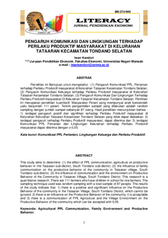 Penelitian ini Bertujuan untuk mengetahui : (1) Pengaruh Komunikasi PPL, Pertanian terhadap Perilaku Produktif masyarakat di Kelurahan Tataaran Kecamatan Tondano Selatan, (2) Pengaruh Komunikasi Keluarga terhadap Perilaku Produktif masyarakat di Kelurahan Tataaran Kecamatan Tondano Selatan, (3) Pengaruh Komunikasi Dan Lingkungan Terhadap Perilaku Produktif masyarakat Di Kelurahan Tataaran Kecamatan Tondano Selatan. Penilitian ini merupakan penelitian kuantitatif. Masyarakat Petani yang mempunyai anak bersekolah yaitu berjumlah 111 petani. Teknik pengambilan sampel yang dilakukan adalah random sampling dengan jumlah sampel sebanyak 87 orang. Hasil penelitian menunjukkan bahwa : 1) terdapat pengaruh positif dan signifikan terhadap Perilaku Produktif masyarakat di Kelurahan Kelurahan Tataaran Kecamatan Tondano Selatan yang tidak dapat diabaikan. 2) terdapat pengaruh terhadap Perilaku Produktif masyarakat, dapat diterima dan 3) terdapat Komunikasi PPL Pertanian dan Lingkungan Kelurahan terhadap Perilaku Produktif masyarakat dapat diterima dengan ɑ 0,05.