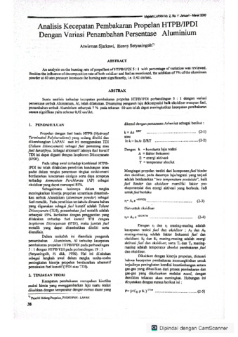 Suatu analisis terhadap kecepatan pembakaran propelan HTPB/IPDI perbandingan 5: 1 dengan variasi persentase serbuk Aluminium, Al, telah dilakukan. Disamping pengaruh laju dekomposisi baik oksidiser maupun fuel, penambahan serbuk Aluminium sebanyak 7% pada tekanan 60 atm telah dapat meningkatkan kecepatan pembakaran secara signifikan yaitu sebesar 0,42 cm/det.