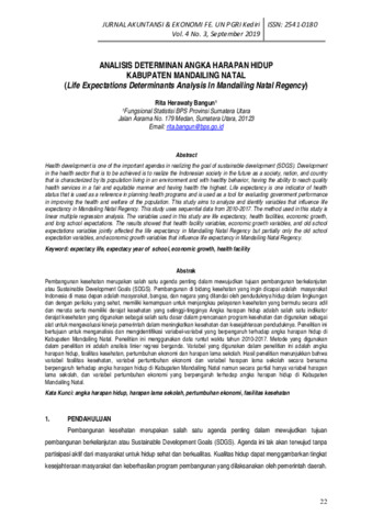 Rita Herawaty, Bangun (2019) Analisis determinan angka harapan hidup Kabupaten Mandailing Natal. JAE (Jurnal Akuntansi dan Ekonomi), 4 (3): 3. pp. 22-31. ISSN 2721-9313