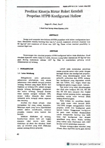 Perancangan dan simulasi propelan HTPB konfigurasi hollow telah dilakukan. Hasil simulasi diperoleh waktu bakar 6,7 detik, tekanan ruang bakar maksimum 60 Kg/cm² dan gaya dorong maksimum sebesar 1237 Kg. Nilai ini memberikan peluang untuk dilakukannya uji terbang.