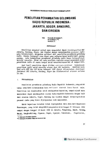 Penelitian mengenai sejauh mana masyarakat dapat. mendengarkan RRI Jakarta, Bandung, Bogor, dan Cirebon dengan mempergunakan pesawat radio yang konvensional, merupakan aplikasi dari penelitian perambatan gelombang radio. Karena Topografi Jawa Barat yang sebagian besar terdiri dari gunung gunung, maka kemungkinan perambatan gelombang radio besar kemungkinan melalui ionosfer. Untuk ini maka perilaku ionosfer sangat menentukan sifat penerimaan radio di suatu tempat untuk menerima siaran RRI di tempat lain. Dari hasil penelitian dapat dilihat contour-contour kemampuan penerimaan radio untuk menerima siaran dari RRI tertentu. Demikian pula dari pola MUF dan LUF bulan Pebruari 1982 dapat ditentukan dominasi frekuensi RRI Jakarta, Bandung, Bogor dan Cirebon untuk siaran selama 24 Jam.