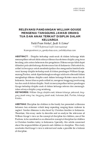 Yuki, Fran Siska and Jadi, S. Lima (2020) Relevansi pandangan William Gouge mengenai tanggung jawab orang tua dan anak terkait disiplin dalam keluarga. Verbum Christi: Jurnal Teologi Reformed Injili, 7 (2): 4. pp. 161-189. ISSN 2355-6374