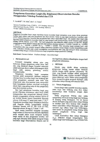 | Uncontrolled Keywords: | fotometri bukaan - koefisien ekstingsi - kecerahan langit |