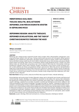 Wilson Jeremiah (2022) Mereformasi akal budi: teologi analitik, skolastisisme reformed, dan peran dogmatik Kristen di sepanjang masa. Verbum Christi: Jurnal Teologi Reformed Injili, 9 (2): 5. pp. 187-205. ISSN 2355-6374