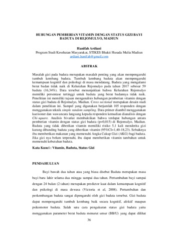 Masalah gizi pada baduta merupakan masalah penting yang akan mempengaruhi tumbuh kembang baduta. Tumbuh kembang baduta akan mempengaruhi kemampuan kognitif dan psikologi di masa mendatang. Baduta yang mengalami berat badan tidak naik di Kelurahan Rejomulyo pada tahun 2017 sebesar 59 baduta (16,34%). Data tersebut menunjukkan bahwa Kelurahan Rejomulyo memiliki persentase tertinggi untuk baduta yang berat badannya tidak naik. Penelitian ini memiliki tujuan menganalisis hubungan pemberian vitamin dengan status gizi baduta di Rejomulyo, Madiun. Cross sectional merupakan desain studi dalam penelitian ini. Sampel yang digunakan berjumlah 105 responden dengan menggunakan teknik simple random sampling. Data primer diambil menggunakan kueisoner dan wawancara langsung kepada responden kemudian dianalisis dengan Chi-square. Analisis bivariat membuktikan bahwa terdapat hubungan antara pemberian vitamin dengan status gizi baduta (p=0,015) di Rejomulyo, Madiun. Baduta yang tidak diberikan vitamin memiliki risiko 5,1 kali menderita gizi kurang dibanding baduta yang diberikan vitamin (95%CI=1,40-18,23). Sebaiknya ibu memberikan makanan yang memenuhi Angka Cukup Gizi (AKG) bagi baduta. Jika gizi nya belum terpenuhi, ibu dapat memberikan vitamin tambahan untuk memenuhi kebutuhan baduta.
