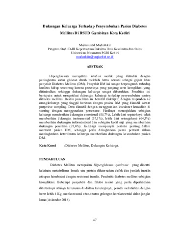 Muhammad Mudzakkir (2020) Dukungan keluarga terhadap penyembuhan pasien diabetes mellitus Di RSUD Gambiran Kota Kediri. Jurnal Nusantara Medika, 4 (1): 6. pp. 47-53. ISSN 2963-3311