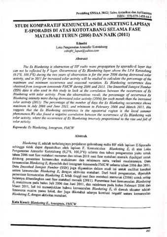 Ednofri (2012) Studi komparatif kemunculan Blanketing lapisan E-Sporadis di atas Kototabang selama fase matahari turun (2006) dan naik (2011). In: Seminar Nasional Sains Atmosfer & Antariksa 2012: Memperkuat Sains Atmosfer dan Antariksa serta Teknologinya untuk mendukung Kemandirian Kedirgantaraan Nasional, 27 November 2012, Puspitek Serpong.