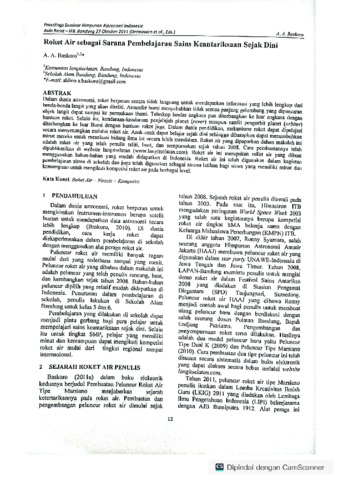 Aldino A. Baskoro (2011) Roket air sebagai sarana pembelajaran sains keantariksaan sejak dini. In: Prosidings Seminar Himpunan Astronomi Indonesia, 27 Okt 2011, Bandung.