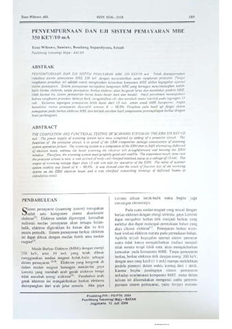 Tono Wibowo and Saminto and Bambang Supardiyono and Sutadi (2004) Penyempurnaan dan uji sistem pemayaran MBE 350 KEV/10 mA. PROSIDING PERTEMUAN DAN PRESENTASI ILMIAH PENELITIAN DASAR ILMU PENGETAHUAN DAN TEKNOLOGI NUKLIR: 25. pp. 1-9. ISSN 0216-3128