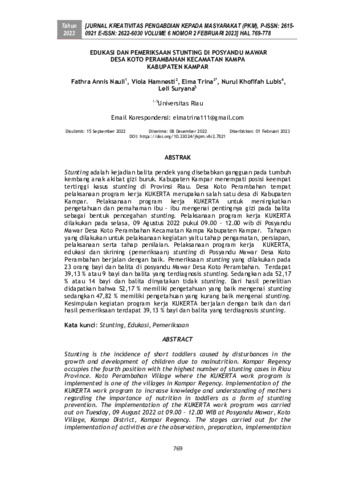 | Uncontrolled Keywords: | Edukasi, Pemeriksaan, Stunting, Health education, Malnutrition |