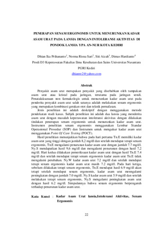 Penyakit asam urat merupakan penyakit yang disebabkan oleh tumpukan asam urat atau kristal pada jaringan, terutama pada jaringan sendi.Penatalaksanaan non farmakologis untuk menurunkan kadar asam urat pada penderita penyakit asam urat salah satunya adalah melakukan senam ergonomis yang merupakan kombinasi gerakan otot dan teknik pernafasan.Jenis penelitian ini adalah deskriptif dengan menggunakan metodependekatan studi kasus. Subjek penelitian ini adalah dua lansia yang menderita asam urat dengan masalah keperawatan intoleransi aktivitas dengan dilakukan tindakan penerapan senam ergonomis untuk menurunkan kadar asam urat.Instrumen penelitian senam ergonomis menggunakan Lembar StandarOperasional Prosedur (SOP) dan Instrumen untuk mengukur kadar asam urat menggunakan Point Of Care Testing (POCT).Hasil penelitian menunjukkan bahwa pada hari pertama Tn.E memiliki kadar asam urat yang tinggi dengan jumlah 8,2 mg/dl dan setelah mendapat terapi senam ergonomis, Tn.E mengalami penurunan kadar asam urat dengan jumlah 7.7 mg/dl.Ny.S mendapatkan hasil 9,6 mg/dl dan mengalami penurunan dengan hasil 7,2 mg/dl. Hari kedua dilakukan pemeriksaan kadar asam urat dengan hasil Tn.E 7.4 mg/dl dan setelah mendapat terapi senam ergonomis kadar asam urat Tn.E tidak mengalami perubahan. Ny.W kadar asam urat 7.2 mg/dl dan setelah mendapat terapi senam ergonomis kadar asam urat masih 7.2 mg/dl. Pada hari ketiga, sebelum dilakukan terapi senam ergonomis, Tn.E mendapat hasil 6.9 mg/dl akan tetapi setelah mendapat senam ergonomis, kadar asam urat menngalami peningkatan dengan jumlah 7.0 mg/dl. Ny.S kadar asam urat 5.9 mg/dl dan setelah melakukan terapi senam ergonomis, Ny.S mengalami peningkatan asam urat dengan hasil 6.2 mg/dl. Simpulannya bahwa senam ergonomis berpengaruh terhadap penurunan kadar asam urat.