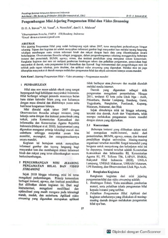 | Uncontrolled Keywords: | Jejaring Pengamatan Hilal – Video streaming – Pengamatan mandiri |