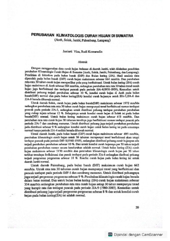 Dengan menggunakan data curah hujan bulanan di daerah Jambi, telah dilakukan penelitian perubahan Klimatologis Curah Hujan di Sumatra (Aceh, Solok, Jambi, Palembang, dan Lampung). Penelitian di fokuskan pada bulan basah (DJF) dan Bulan kering (JJA). Hasil analisis data diperoleh pada bulan basah (DJF) curah hujan maksimum sebesar 664 mm/bln. Dan perubahan rata-rata 30 tahun curah hujan memperlihat pola yang berfluktuasi. Untuk bulan kering (JJA) curah hujan maksimum di Aceh sebesar 584 mm/bln, sedangkan perubahan rata rata 30 tahun trend curah hujan juga berfluktuasi dan terdapat puncak pada periode JJA-4(1930-1959), Kemudian untuk distribusi peluang terjadi perubahan sebesar 10 %, kondisi curah hujan di Aceh pada bulan basah(DJF) normal dan pada bulan kering(JJA) kondisi curah hujannya untuk JJA-7,JJA-8 dan JJA-9 berada dibawah normal.