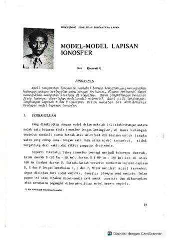 Hasil pengamatan ionosonde variabel berupa ionogram yang menunjukkan hubungan antara ketinggian semu dengan frekuensi, di mana frekuensi dapat menunjukkan kerapatan elektron di ionosfer. Untuk penghitungan besaran fisis lainnya, diperlukan model-model matematik dari pada lengkungan- Lengkungan lapisan E dan F ionosfer. Dalam makalah ini akan dibahas berbagai model lapisan ionosfer.