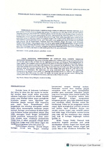 Lilik Harsanti and Mugiono (2006) Perbaikan daya hasil varietas padi Cimelati melalui teknik mutasi. In: Risalah seminar ilmiah aplikasi isotop dan radiasi, jakarta 12 Desember 2006., 12 Desember 2006, Jakarta.