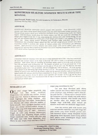 Agus Purwadi and Widdi Usada and Suryadi and Isyuniarto and Sri Sukmajaya and Mintolo (2004) Konstruksi reaktor ozonizer multi kamar tipe koaxial. Prosiding Pertemuan dan Presentasi Ilmiah Penelitian Dasar Ilmu Pengetahuan dan Teknologi Nuklir: 34. pp. 1-8. ISSN 0216-3128