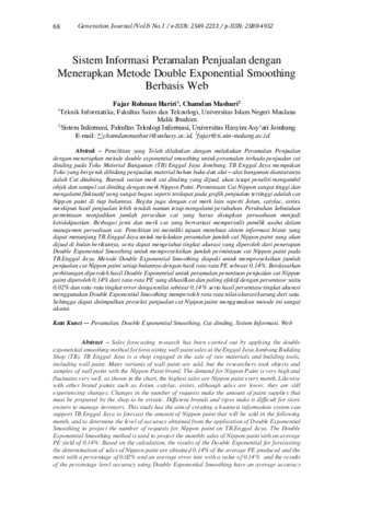 | Uncontrolled Keywords: | Peramalan, Double Exponential Smoothing, Cat dinding, Sistem Informasi. Web, Forecasting, Selling successful businesses, Information systems |