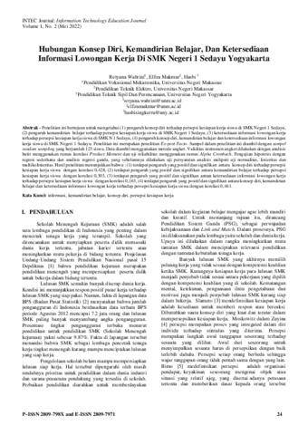 Retyana, Wahrini and Elfira, Makmur and Hasbi, Hasbi (2022) Hubungan konsep diri, kemandirian belajar, dan ketersediaan informasi lowongan kerja di SMK Negeri 1 Sedayu Yogyakarta. Information Technology Education Journal, 1 (2): 4. pp. 24-30. ISSN 2809-7971