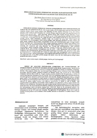 Dwi Djoko Slamet Santosa and Soeranto Human (2006) Pengaruh kondisi persiapan analisa karakteristik pati hidroksipropilasi galur mutan sorghum Zh-30. In: Risalah seminar ilmiah aplikasi isotop dan radiasi, jakarta 12 Desember 2006., 12 Desember 2006, Jakarta.