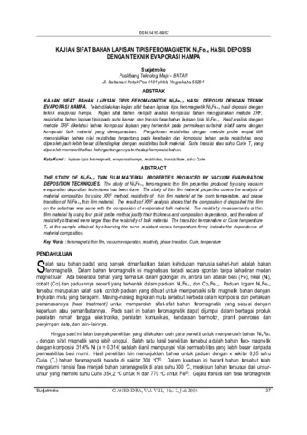 KAJIAN SIFAT BAHAN LAPISAN TIPIS FEROMAGNETIK NiXFe1-X HASIL DEPOSISI DENGAN TEKNIK