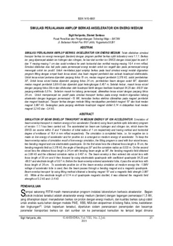 Hariyanto, Sigit and Santoso, Slamet (2005) SIMULASI PERJALANAN AMPLOP BERKAS AKSELERATOR ION ENERGI MEDIUM. Ganendra, 8 (2). pp. 21-28. ISSN p-ISSN: 1410-6957, e-ISSN: 2503-5029