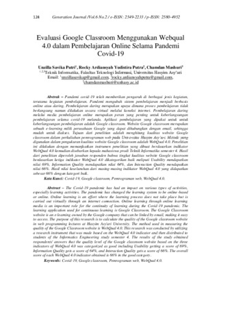 Unzilla, Savika Putri and Rocky, Ardiansyah Yudistira Putra and Chamdan, Mashuri (2022) Evaluasi google classroom menggunakan webqual 4.0 dalam pembelajaran online selama pandemi covid-19. Generation Journal, 6 (2): 6. pp. 124-133. ISSN 2580-4952