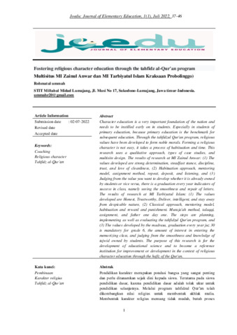 Rohmatul Ummah (2022) Fostering religious character education through the tahfidz al-Qur'an program Multisitus MI Zainul Anwar dan MI Tarbiyatul Islam Kraksaan Probolinggo. Journal of Basic Education, 1 (1): 5. pp. 37-46. ISSN 2961-8584