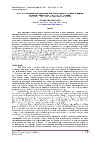 Rahmi, Zahri Zani and Azwir, Anhar (2021) Respon Trichoderma spp. terhadap indeks vigor benih dan berat kering kecambah padi varietas Sirandah Batuampa. Jurnal Biologi dan Pembelajarannya (JB&P), 8 (1): 1. pp. 1-6. ISSN 2406-8659