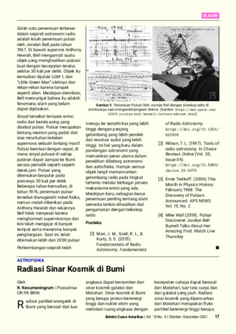 R.Kesumaningrum (2021) Radiasi sinar kosmik di Bumi. Buletin Cuaca Antariksa, 10 (4): 7. pp. 17-20. ISSN 2303-2707