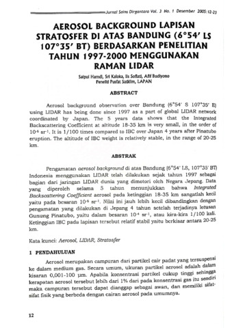 Pengamatan aerosol background di atas Bandung (6°54'LS, 107°35'BT) Indonesia menggunakan LIDAR telah dilakukan sejak tahun 1997 sebagai bagian dari jaringan LIDAR dunia yang dimotori oleh Negara Jepang. Data yang diperoleh selama 5 tahun menunjukkan bahwa Integrated Backscattering Coefficient aerosol pada ketinggian 18-35 km sangatlah kecil yaitu pada besaran 10·6 sr 1. Nilai ini jauh lebih kecil dibandingkan dengan pengamatan yang dilakukan di Jepang 4 tahun setelah terjadinya letusan Gunung Pinatubo, yaitu dalam besaran 10·4 sr+, atau kira-kira 1/100 kali. Ketinggian IBC pada lapisan tersebut relatif stabil yaitu berkisar antara 20-25 km.