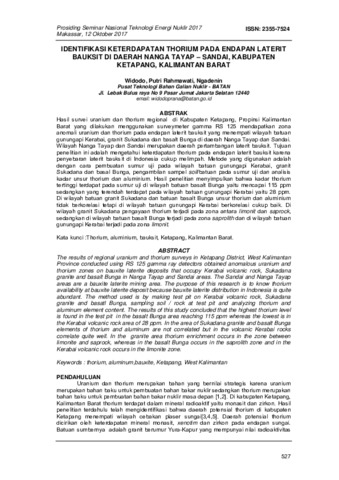 | Uncontrolled Keywords: | thorium, aluminum,bauxite, Ketapang, West Kalimantan |