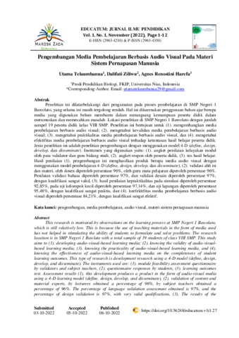 Utama Telaumbanua and DalifatiZiliwu and Agnes Renostini Harefa (2022) Pengembangan media pembelajaran berbasis audio visual pada materi sistem pernapasan manusia. Educatum: Jurnal Ilmu Pendidikan, 1 (1): 1. pp. 1-12. ISSN 2963-4350