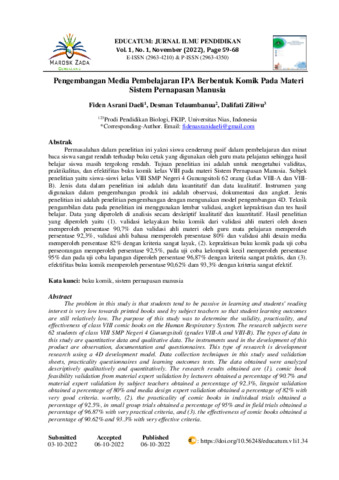 Fiden Asrani Daeli and Desman Telaumbanua and Dalifati Ziliwu (2022) Pengembangan media pembelajaran IPA berbentuk komik pada materi sistem pernapasan manusia. Educatum: Jurnal Ilmu Pendidikan, 1 (1): 7. pp. 59-68. ISSN 2963-4350