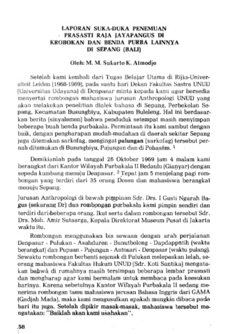 5.Laporan Suka-Duka Penemuan Prasasti Raja Jayapangus di Krobokan dan Benda Purba Lainnya di Sepang (Bali).pdf - Published Version