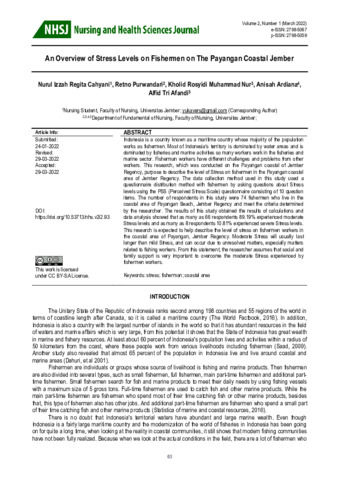 Nurul Izzah Regita, Cahyani and Retno, Purwandari and Kholid Rosyidi Muhammad, Nur and Anisah, Ardiana and Alfid Tri, Afandi (2022) An overview of stress levels on fishermen on The Payangan Coastal Jember. Nursing and Health Sciences Journal, 2 (1): 11. pp. 63-68. ISSN 2798-5059