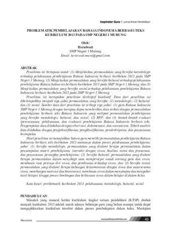 Herniwati, Herniwati (2023) Problematik pembelajaran bahasa Indonesia berbasis teks kurikulum 2013 pada SMP Negeri 1 Murung. Inspirator Guru, 5 (2): 5. pp. 43-52. ISSN 2654-2536