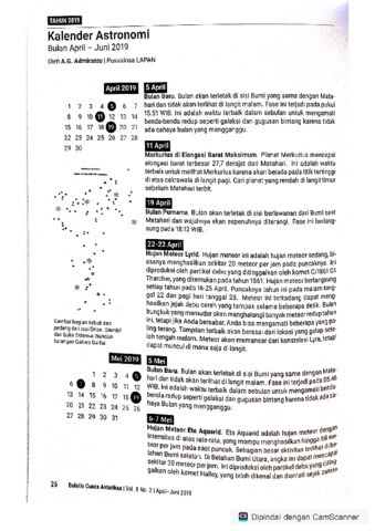 Admiranto, Raden Agustinus Gunawan (2019) Kalender Astronomi bulan April-Juni 2019. Buletin Cuaca Antariksa, 8 (2): 13. pp. 26-27. ISSN 2303-2707