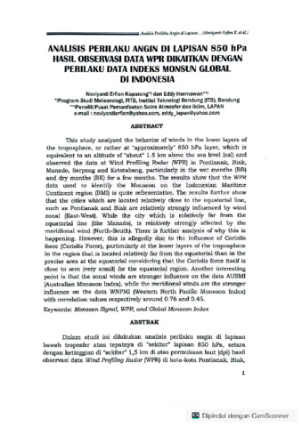 Noviyanti, Erfien Kaparang and Eddy, Hermawan (2010) Analisis perilaku angin di lapisan 850 hPa hasil observasi data WPR dikaitkan dengan perilaku data indeks monsun global di Indonesia. Jurnal Sains Dirgantara, 8 (1): 1. pp. 1-24. ISSN 1412-808X