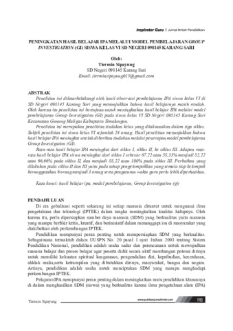 Tiermin, Sipayung (2023) Peningkatan hasil belajar IPA melalui model pembelajaran Group Investigation (GI) siswa kelas VI SD Negeri 098145 Karang Sari. Inspirator Guru, 5 (2): 13. pp. 113-122. ISSN 2654-2536