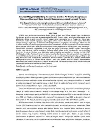 Muh, Bagus Budianto and Bambang, Harianto and Anid, Supriyadi and Ery, Setiawan and Hartana, Hartana (2023) Edukasi masyarakat tentang konservasi sumber air melalui penghijauan kawasan waduk di Desa Jelantik Kecamatan Jonggat Lombok Tengah. PORTAL ABDIMAS: Jurnal Pengabdian Kepada Masyarakat, 1 (1): 8. pp. 58-67. ISSN 2986-4577