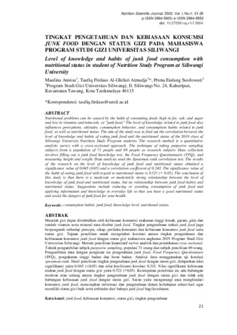 Maulina, Annisa and Taufiq Firdaus Al-Ghifari, Atmadja and Prima Endang, Susilowati (2022) Tingkat pengetahuan dan kebiasaan konsumsi junk food dengan status gizi pada mahasiswa Program Studi Gizi Universitas Siliwangi. Nutrition Scientific Journal, 1 (1): 3. pp. 21-29. ISSN 2964-5603