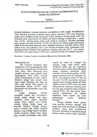 Hadijaya, Hadijaya (2011) Karakterisasi logam paduan alumunium 7075 hasil peleburan. In: Prosiding Seminar Pengelolaan Perangkat Nuklir Tahun 2011 PTBN-BATAN ISSN 1978-9858, 22 November 2011, Serpong.