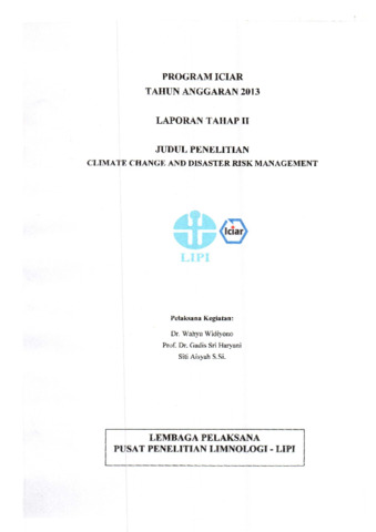 Wahyu, Widiyono and Gadis, S. Haryani and Siti, Aisyah (2013) Program ICIAR Tahun anggaran 2013. Laporan tahap II. Judul penelitian Climate change and disaster risk management. Technical Report. Pusat Penelitian Limnologi, Cibinong. (Unpublished)